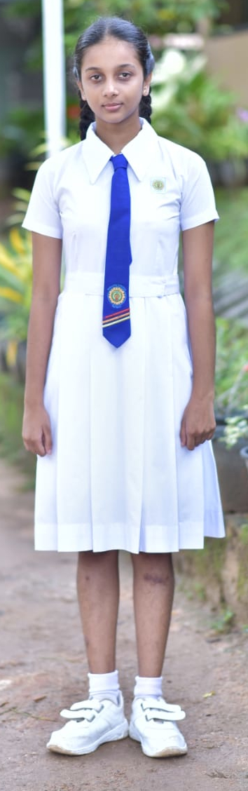 - පාසල් ලාංඡනය ගවුමේ වම් කෙළවර සම්බන්ධ කර මසා තිබිය යුතුය.